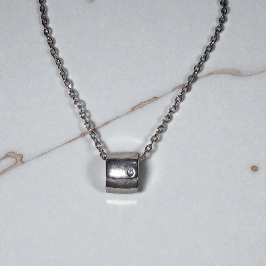 Collier Cyne en acier inoxydable argent chaîne ornée d'un pendentif géométrique au design épuré. Moderne et discret, il apporte une touche contemporaine et élégante à la tenue.